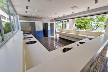 Po celém kempu se nacházejí restaurace, snack bary, kavárny a pizzerie, které nabízejí moderní i tradiční jídla.